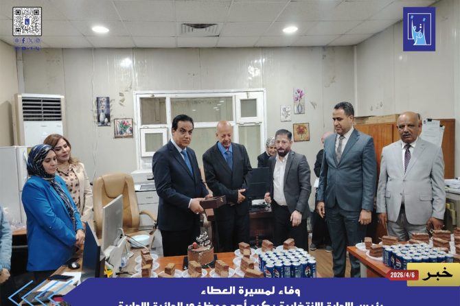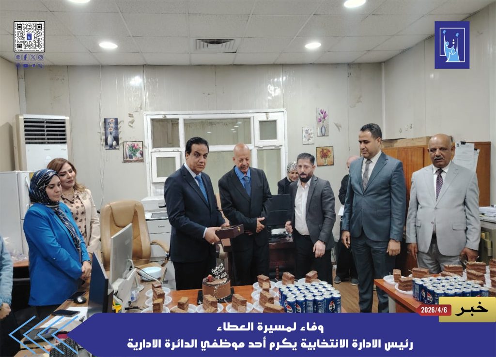 وفاء لمسيرة العطاء رئيس الادارة الانتخابية يكرم أحد موظفي الدائرة الادارية والمالية